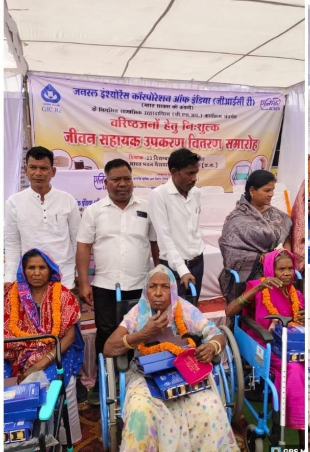 कोरबा। रजत जयंती के अवसर पर वरिष्ठजनों के सम्मान एवं सहयोग के उद्देश्य से जिला प्रशासन, समाज कल्याण विभाग तथा जनपद पंचायत कोरबा के संयुक्त तत्वावधान में भारत सरकार की कम्पनी जनरल इंश्योरेंस कॉरपोरेशन ऑफ इंडिया के सीएसआर कार्यक्रम अंतर्गत निःशुल्क जीवन सहायक उपकरण वितरण समारोह का आयोजन भारत भवन, भैसमा में किया गया। कार्यक्रम में कुल 121 वरिष्ठजनों को 729 सहायक उपकरण निःशुल्क वितरित किए गए।