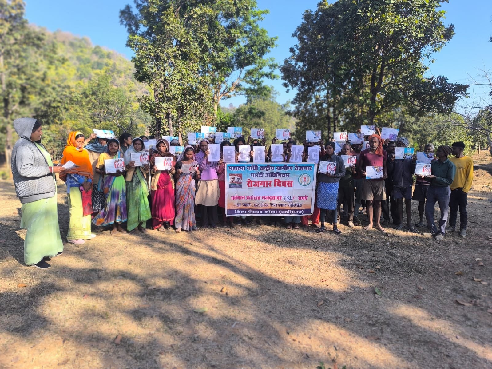 मनरेगा के कार्य स्थलों पर आयोजित रोजगार दिवस के दौरान विकसित भारत जी राम जी अधिनियम 2025 से संबंधित पम्पलेट का वितरण कर इसके प्रावधानों की जानकारी ग्रामीणों को दी गई तथा रोजगार अधिकारों पर चर्चा की गई।