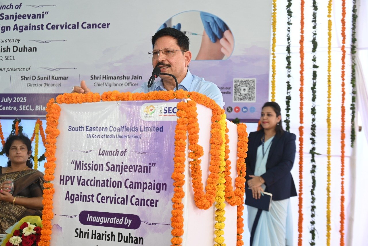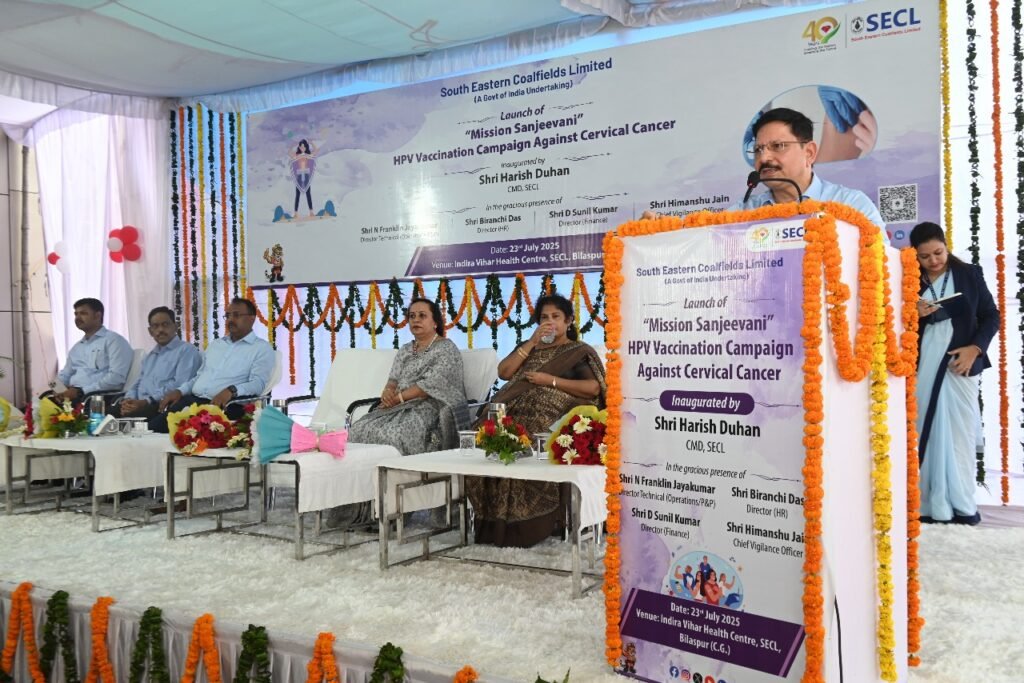 बिलासपुर। एसईसीएल मुख्यालय के इन्दिरा विहार स्वास्थ्य केंद्र में आज ‘मिशन संजीवनी – एचपीवी टीकाकरण अभियान’ की औपचारिक शुरुआत की गई। इस महत्वपूर्ण अभियान का शुभारंभ एसईसीएल के सीएमडी हरीश दुहन द्वारा किया गया।