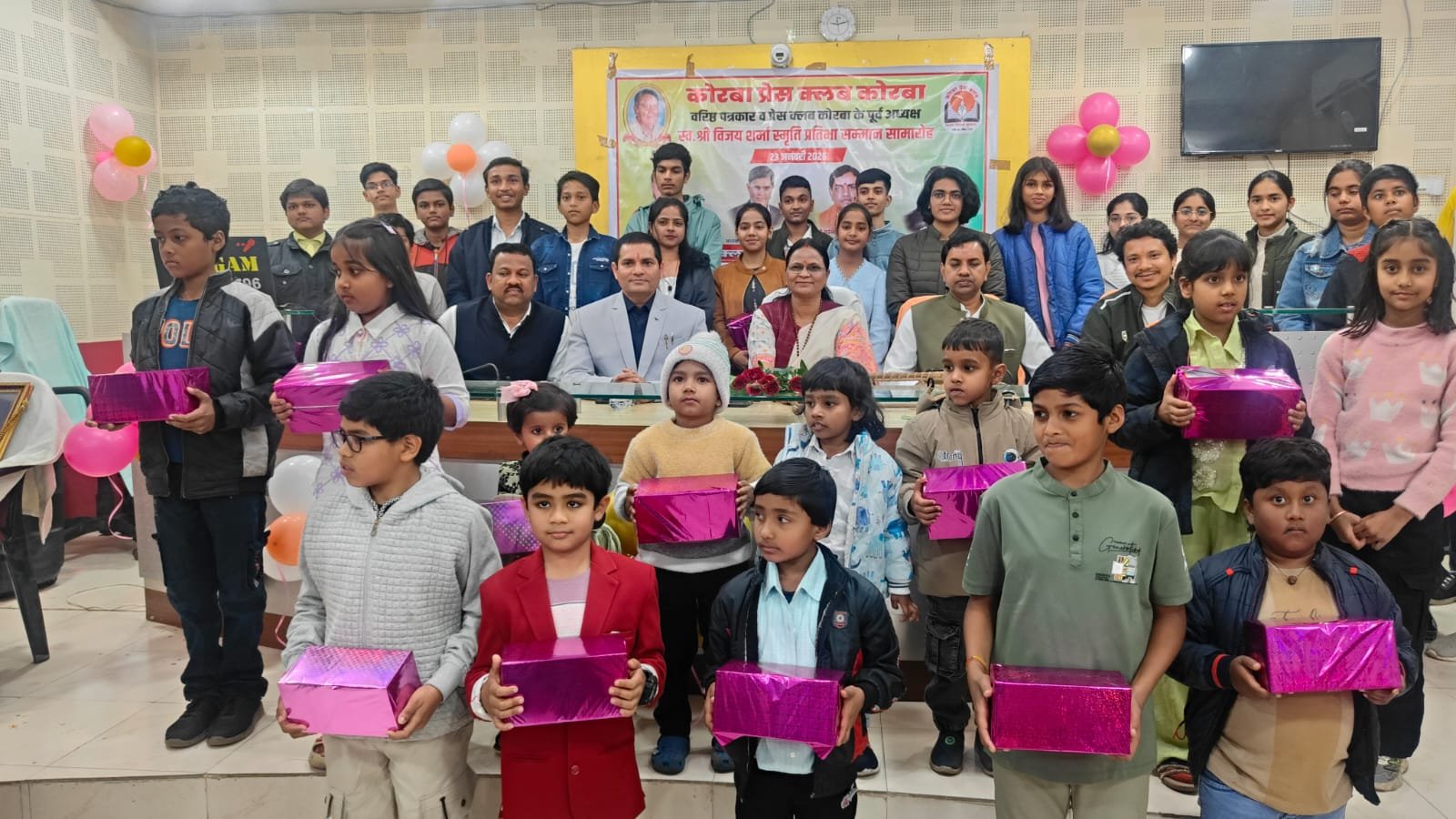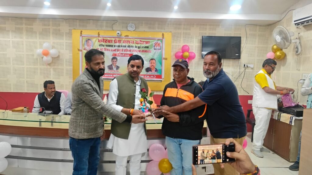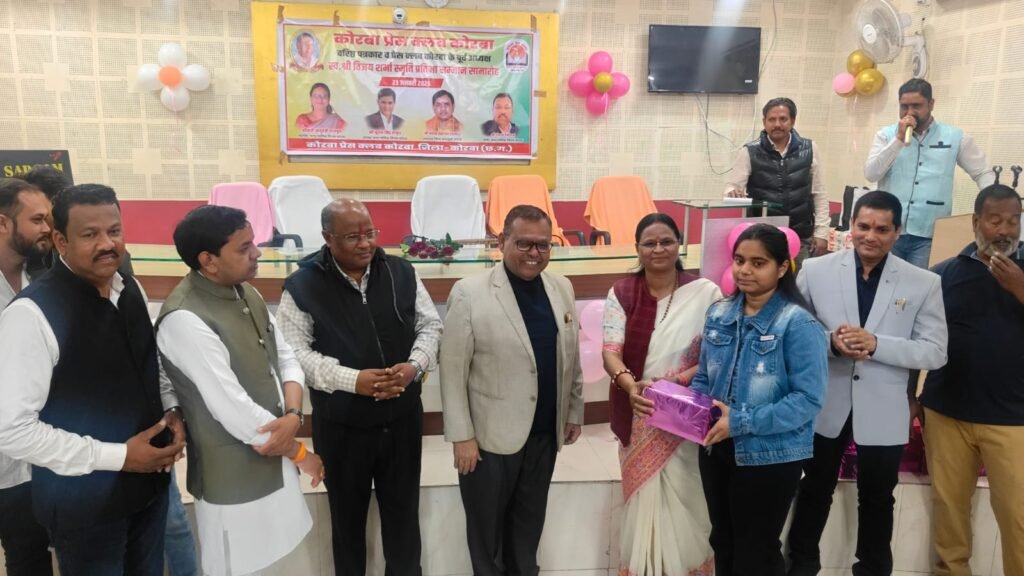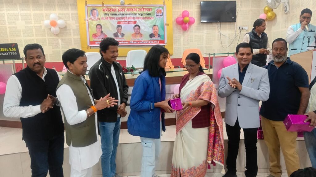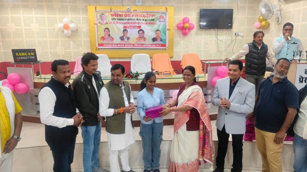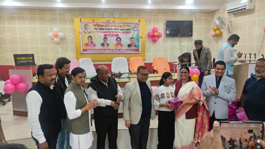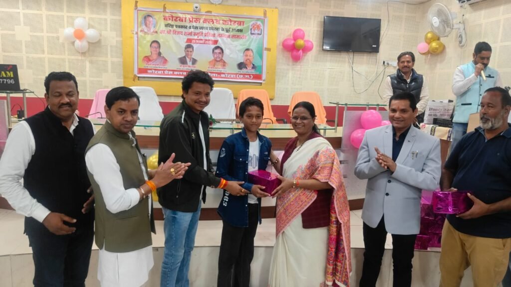 यह बातें शुक्रवार 23 जनवरी 2026 को कोरबा प्रेस क्लब तिलक भवन में आयोजित प्रतिभावान बच्चों के सम्मान समारोह में बतौर मुख्य अतिथि मौजूद रहीं नगर पालिक निगम कोरबा की महापौर श्रीमती संजू देवी राजपूत ने कहीं। वरिष्ठ पत्रकार एवं कोरबा प्रेस क्लब के पूर्व अध्यक्ष स्व.श्री विजय शर्मा की स्मृति में प्रतिभा सम्मान समारोह आयोजित किया गया था। वसंत पंचमी के शुभ अवसर पर आयोजित कार्यक्रम में कोरबा प्रेस क्लब के सदस्य परिवार समेत सम्मिलित हुए और होनहार बच्चों को सम्मानित एवं पुरस्कृत किया गया। समारोह में कार्यक्रम की अध्यक्षता कर रहे नगर निगम के सभापति नूतन सिंह ठाकुर, दूसरी बार निर्विरोध पार्षद एवं भाजयुमो उपाध्यक्ष नरेंद्र देवांगन, पार्षद पंकज देवांगन, पार्षद मुकुंद सिंह कंवर मंच पर उपस्थित रहे और प्रतिभावान बच्चों को सम्मानित किया।