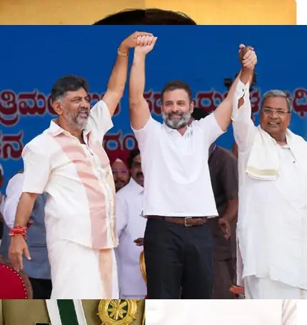 कर्नाटक में 224 में से 135 सीटों पर जीत के साथ कांग्रेस की सरकार बनी। तस्वीर 20 मई 2023 के शपथ ग्रहण समारोह की है।