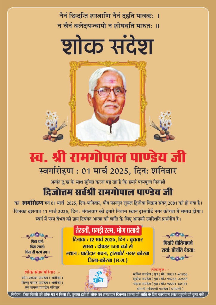 कोरबा2 years agoश्रीमती स्वाति दुबे का निधन