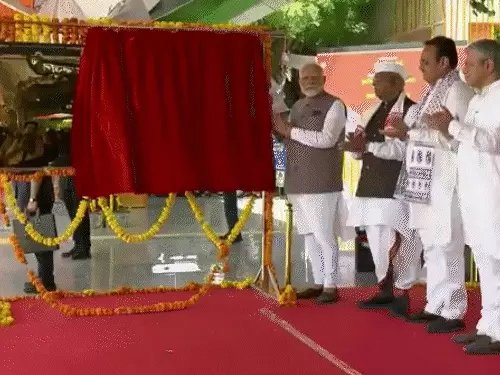 इसके बाद मोदी पलाना स्थित सभास्थल पहुंचे। यहां उनके स्वागत में स्वयं सहायता समूह से जुड़ी सुमित्रा ने प्रधानमंत्री को बैलगाड़ी का मॉडल भेंट किया। उन्होंने प्रधानमंत्री के पैर छूने की कोशिश की। इतने में मोदी खुद झुक गए और उन्होंने ऐसा करने से मना किया। इसके बाद PM ने खुद महिला को प्रणाम किया।