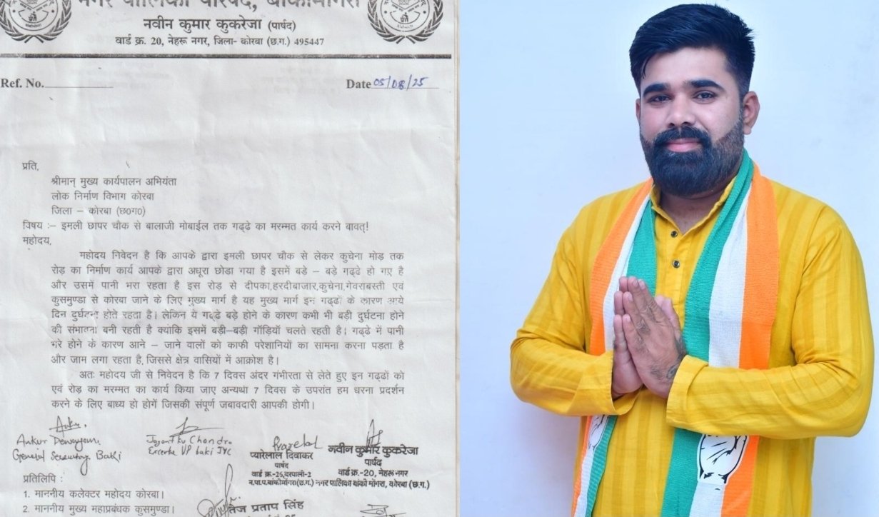 सात दिवस में कुसमुंडा इमली छापर अधूरे निर्माण सड़क को मरम्मत नहीं की गई तो करेंगे धरना प्रदर्शन, पार्षद नवीन कुकरेजा…देखे पूरी खबर
