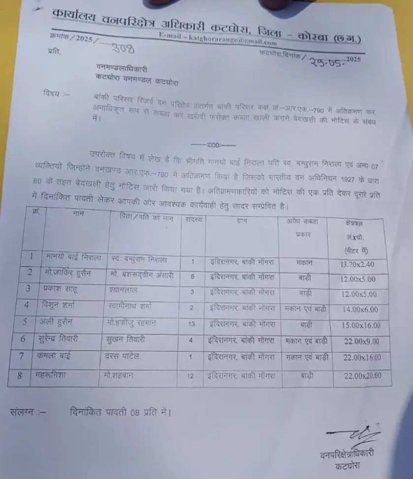 इस बढ़ते कब्जे को देख वन विभाग के द्वारा 8 कब्जाधारियों को चिन्हित कर दिनांक 29/05/25 को शॉर्ट नोटिस दिया गया,,, जिसमें 4 लोगों ने कब्जा भूमि पर पक्का मकान निर्माण करा लिया था और चार लोग बाड़ी बनाए हुए थे, और इस बार भी लोग नोटिस को नजरअंदाज करते हुए अपना कब्जा बरकरार रखा जिसके बाद दिनांक 04/06/25 को वन विभाग का अमला सुबह सुबह पूरे विभाग के दल बल के साथ बुलडोजर लेकर बांस बाड़ी के पीछे पंहुचा, और चिन्हित लोगों के बेजा कब्ज़ा को तोडना शुरू कर दिया, बेजाकब्जा धारियों ने विरोध करने की कोशिश की पर नाकाम रहे और वन अमला अपना काम करता रहा।