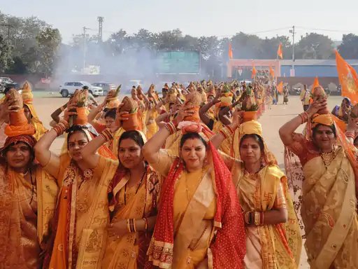 दीपका में श्रीमद् भागवत कथा महोत्सव का शुभारंभ:श्रमवीर स्टेडियम से निकली भव्य शोभायात्रा, उमड़ा श्रद्धालुओं का सैलाब