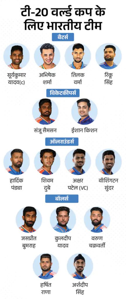 यह टीम वर्ल्ड कप से पहले 21 जनवरी से न्यूजीलैंड के खिलाफ 5 टी-20 मैचों की सीरीज भी खेलेगी। टी-20 वर्ल्ड कप की शुरुआत 7 फरवरी को कोलंबो में पाकिस्तान और नीदरलैंड के बीच मैच से होगी। इसी दिन भारत वानखेड़े स्टेडियम में USA से अपना पहला मैच खेलेगा। फाइनल 8 मार्च 2026 को खेला जाएगा। इसका वेन्यू बाद में तय होगा।