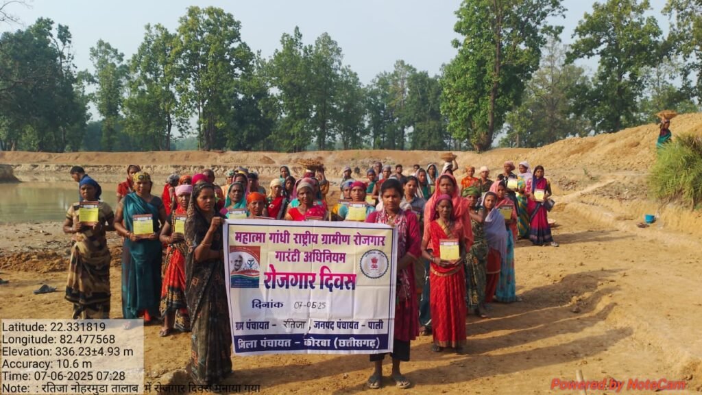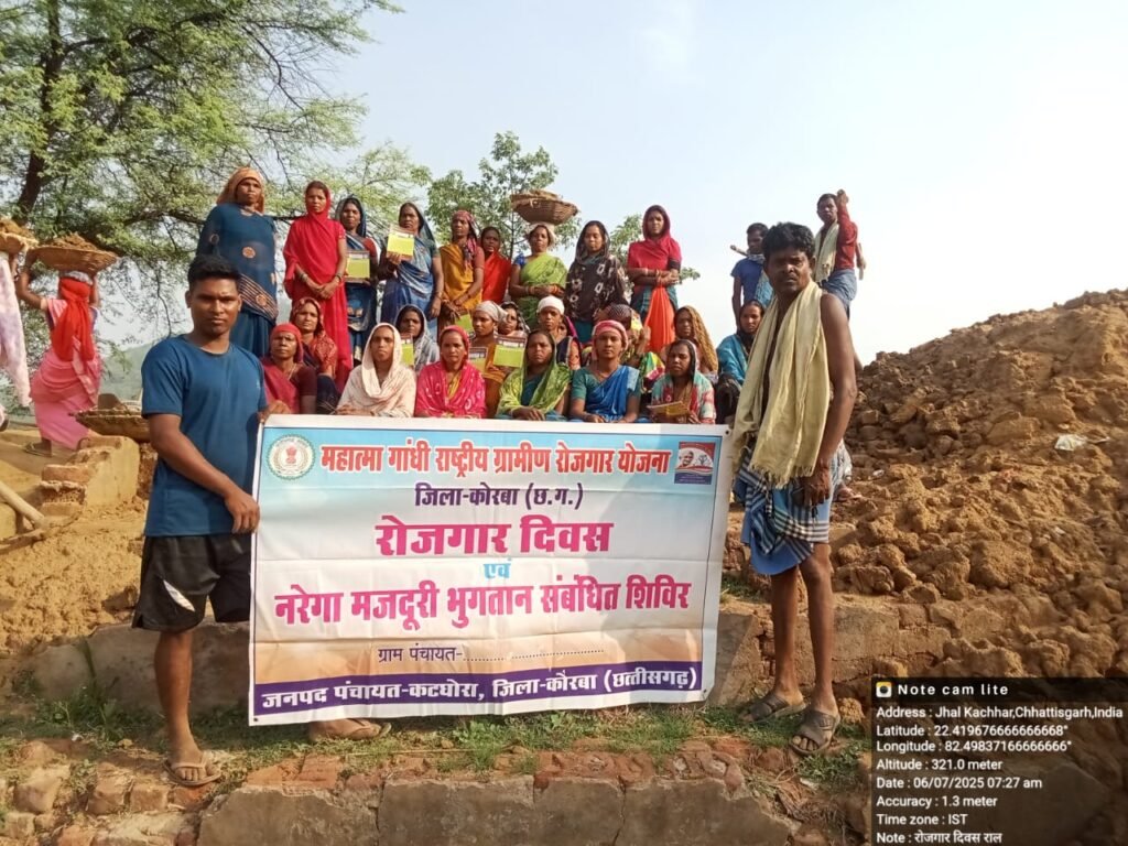 कोरबा। महात्मा गांधी राष्ट्रीय ग्रामीण रोजगार गारंटी योजना के तहत ग्राम पंचायतों में शनिवार को जागरूकता गतिविधि के रूप में रोजगार दिवस मनाया गया. रोजगार दिवस में श्रमिकों को 06 मई से 15 जून तक जिले में चलाए जा रहे जल सरंक्षण अभियान ,मोर गांव मोर पानी के विषय में जानकारी दी गई। श्रमिकों को बताया गया कि जल सरंक्षण एवं जल संचयन के लिए मोर गांव मोर पानी अभियान के तहत जल संवर्धन संरचनाएं सिंचाई कूप निर्माण, सोखता पिट, रेन वाटर हार्वेस्टिंग आदि बनाई जावे। इसके साथ ही मनरेगा के तहत लंबित मजदूरी भुगतान और उसके समाधान की जानकारी दी गई। श्रमिकों को मनरेगा के तहत प्राप्त अधिकारों और मनरेगा की विशेषताओ की जानकारी दी गई.