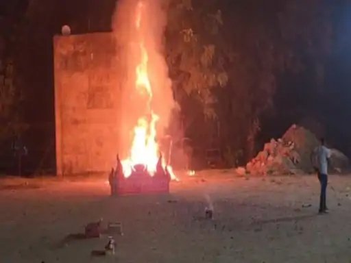 रायपुर। रायपुर के अलग-अलग इलाकों में कई बड़े छोटे रावण का दहन किया गया। इनमें से एक रावण का दहन रायपुर एसएसपी प्रशांत अग्रवाल ने भी किया। ये रावण साइबर ठगी के रावण के रूप में बनाया गया था। जिसे रायपुर के पुलिस लाइन में आतिशबाजी के साथ जलाया गया। इस अवसर पर पुलिस के आला अफसरों समेत आम नागरिक भी उपस्थित थे।