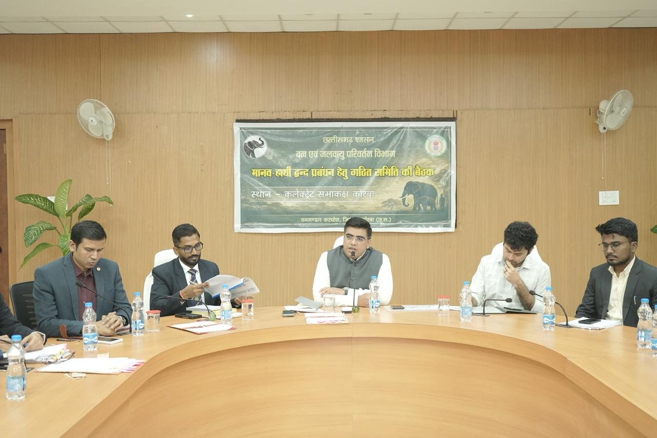 कोरबा। जिले में जंगली हाथियों की सुरक्षा सुनिश्चित करने तथा मानव – हाथी द्वंद को प्रभावी रूप से नियंत्रित करने के उद्देश्य से आज कलेक्टर कुणाल दुदावत की अध्यक्षता में गठित जिला स्तरीय समिति की बैठक कलेक्ट्रेट सभाकक्ष में आयोजित की गई। बैठक में हाथी प्रभावित क्षेत्रों की वर्तमान स्थिति की विस्तृत समीक्षा करते हुए उन्होंने संबंधित विभागों को समन्वित एवं सतत कार्रवाई सुनिश्चित करने के निर्देश दिए।
