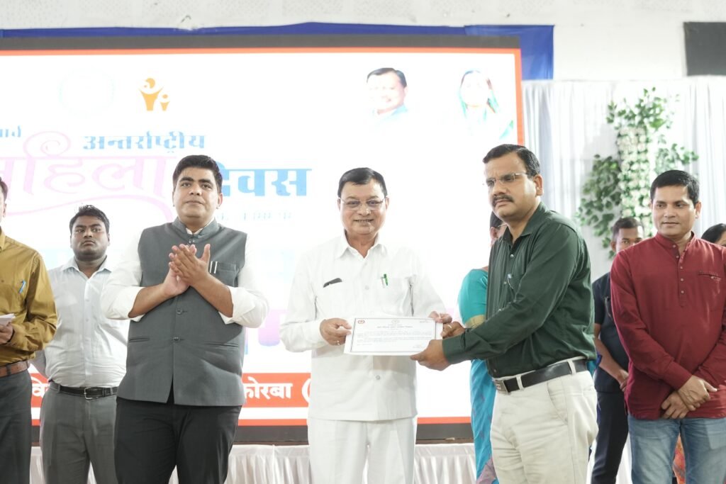 कोरबा। अंतर्राष्ट्रीय महिला दिवस के अवसर पर छत्तीसगढ़ शासन के वाणिज्य, उद्योग, श्रम, आबकारी व सार्वजनिक उपक्रम मंत्री लखन लाल देवांगन के आतिथ्य में नगर के राजीव गांधी ऑडिटोरियम में जिला स्तरीय महतारी वंदन सम्मेलन का आयोजन किया गया। कार्यक्रम में जिले की विभिन्न क्षेत्रो में उत्कृष्ट कार्य करने वालो महिलाओं को सम्मानित एवं बाल विवाह मुक्त पंचायतो को प्रमाण पत्र प्रदान किया गया। इस अवसर पर महापौर श्रीमती संजू देवी राजपूत, नगर निगम सभापती नूतन सिंह ठाकुर, कलेक्टर कुणाल दुदावत, विशेष कर्तव्यस्थ अधिकारी तरुण कुमार किरण, सीईओ जिला पंचायत दिनेश नाग, जिला कार्यक्रम अधिकारी बसंत मिंज सहित अन्य जनप्रतिनिधि, विभागीय अधिकारी कर्मचारी एवं बड़ी संख्या में महिलाएं उपस्थित थी।