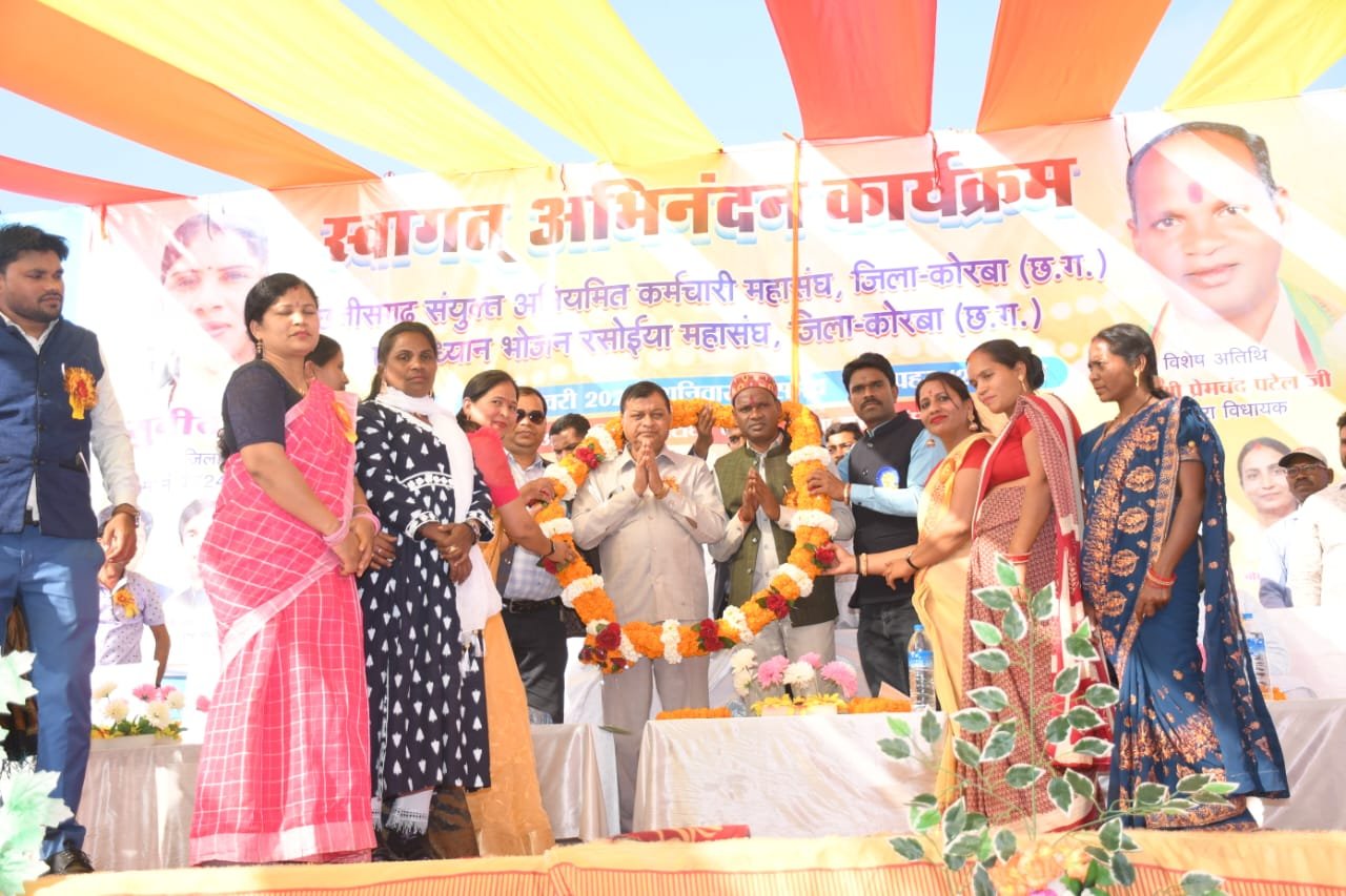 कोरबा। छत्तीसगढ़ संयुक्त अनियमित कर्मचारी महासंघ व मध्यान्ह भोजन रसोइया महासंघ के संयुक्त तत्वाधान में घंटाघर में उद्योग और श्रम मंत्री लखन लाल देवांगन का सम्मान किया गया।