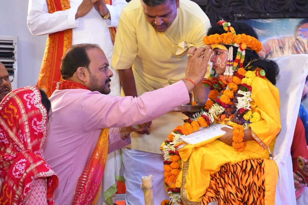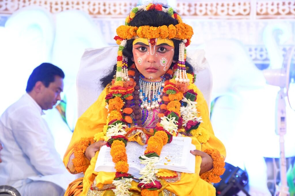 कथा के दूसरे दिन भगवान के बाल स्वरूप की झांकी प्रस्तुत की गई किसने सभी को मंत्रमुग्ध कर दिया। भक्तजनों के द्वारा पूजन अर्चन करने के साथ आशीर्वाद लिया गया।