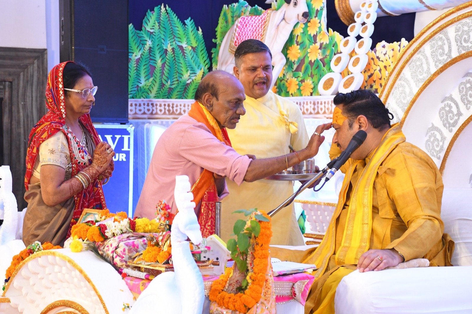 कथावाचक ने जनसाधारण को प्रेरक प्रसंग से जोड़ते हुए इस बात की चर्चा कीजिए हाल में ही इस सदी का सबसे बड़ा वैवाहिक समारोह संपन्न हुआ। कई कारण से इसकी चर्चा विश्व स्तर पर हुई है। दूसरी चीजों को इसमें शामिल न भी किया जाए तो लोगों का ध्यान उस घटना ने अपनी तरफ खींचा है जिसमें आयोजकों ने अतिथियों को भगवान गिरिराज की छवि वाली भेंट देकर उदाहरण प्रस्तुत किया है। समाज को ऐसे सभी सकारात्मक विषय का समर्थन करना चाहिए।