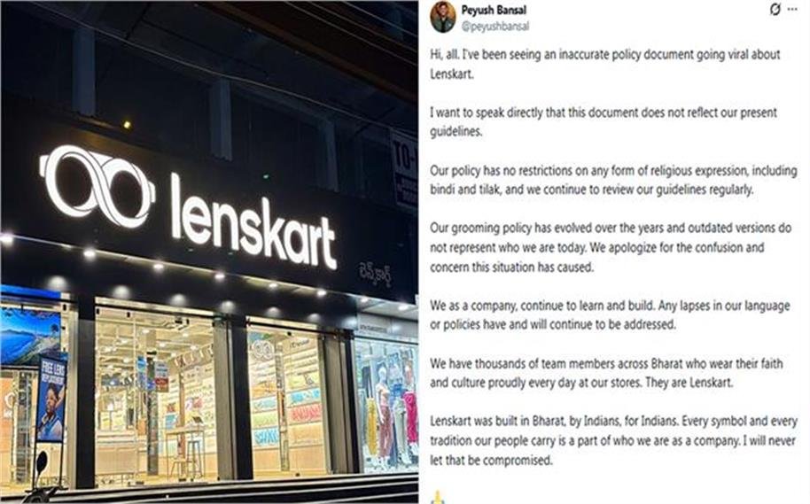 इसके बाद पीयूष बंसल ने सोशल मीडिया पर सफाई देते हुए इन आरोपों को खारिज किया और कहा लिखा, “नमस्ते सभी को, मैं लेंसकार्ट से जुड़ा एक गलत पॉलिसी दस्तावेज़ वायरल होते देख रहा हूं। यह हमारी वर्तमान नीति को नहीं दर्शाता। हमारे कर्मचारियों को बिंदी या तिलक पहनने की पूरी स्वतंत्रता है। हमारी ग्रूमिंग पॉलिसी समय के साथ विकसित हुई है और पुराने संस्करण आज हमारी पहचान को नहीं दर्शाते। इस भ्रम के लिए हम क्षमा चाहते हैं।”