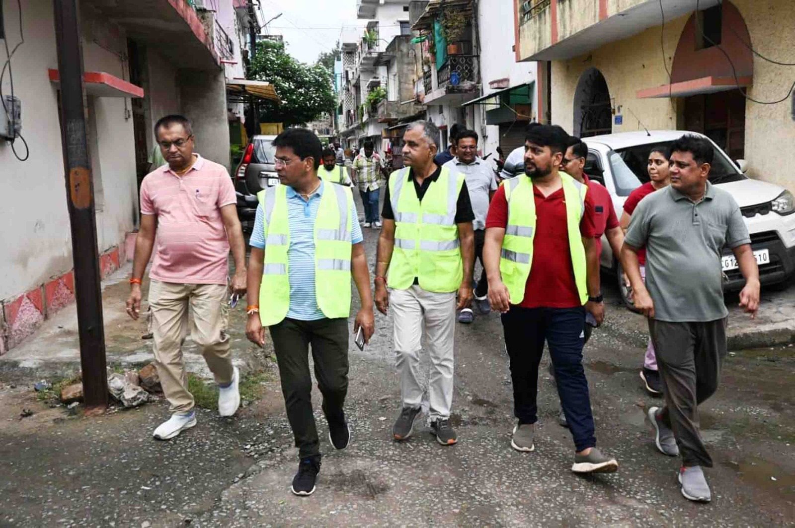 भ्रमण के दौरान आयुक्त श्री पाण्डेय ने पाया कि उक्त आवासीय क्षेत्र में अनेक स्थलों पर नए भवनों का निर्माण किया जा रहा है तथा उनके द्वारा सड़क पर ही सी.एण्ड डी. वेस्ट व भवन निर्माण सामग्री डम्प कर दी गई है, जिससे सड़कों में आवागमन बाधित हो रहा है। आयुक्त श्री पाण्डेय ने अधिकारियों को निर्देश दिए कि निर्मित किए जा रहे भवनों की अनुज्ञा निगम से प्राप्त की गई है या नहीं, इसका परीक्षण कराएं, यदि बिना अनुमति प्राप्त किए भवन निर्माण हो रहा है तो नियमानुसार कार्यवाही करें। उन्होने निर्देशित करते हुए कहा कि सी.एण्ड डी. वेस्ट व भवन निर्माण सामग्री को सड़क पर डम्प करने वालों पर अर्थदण्ड आरोपित करें तथा सी.एण्ड डी. वेस्ट व सामग्रियों को सड़क से हटवाएं। - डोर-टू-डोर पहुंचकर ली सफाई कार्यो की जानकारी