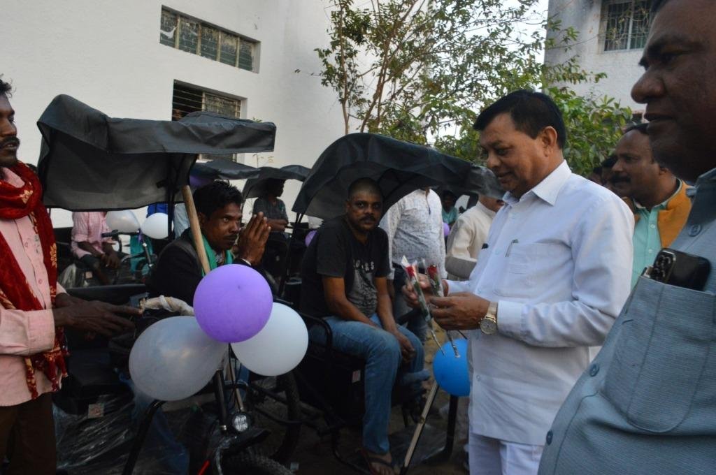 श्रम मंत्री देवांगन ने दिव्यांगजनों को वितरित किए मोटराइज्ड ट्राइसाइकल