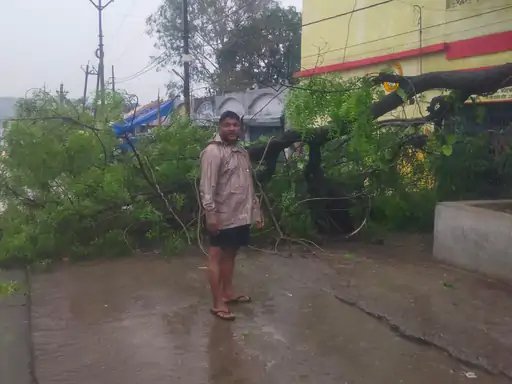 कोरबा में तेज आंधी और बारिश से तबाही:कई घरों के छज्जे उड़े, पेड़ गिरे; दुकानों-मकानों में घुसा पानी