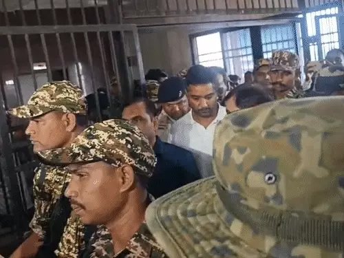 रायपुर की स्पेशल कोर्ट से निकलने के दौरान चैतन्य बघेल हंसते हुए नजर आए।