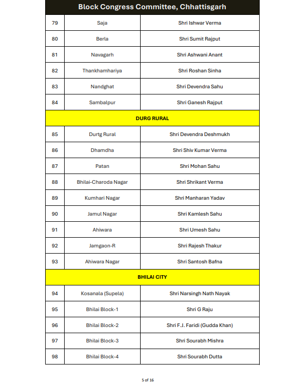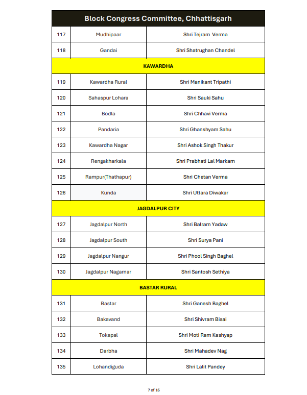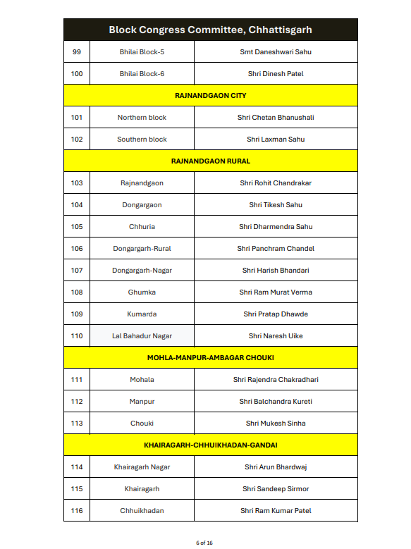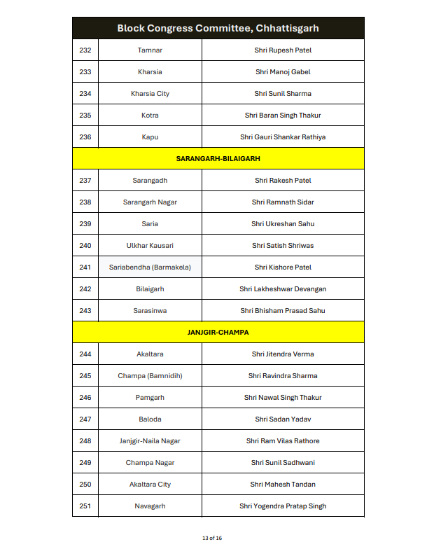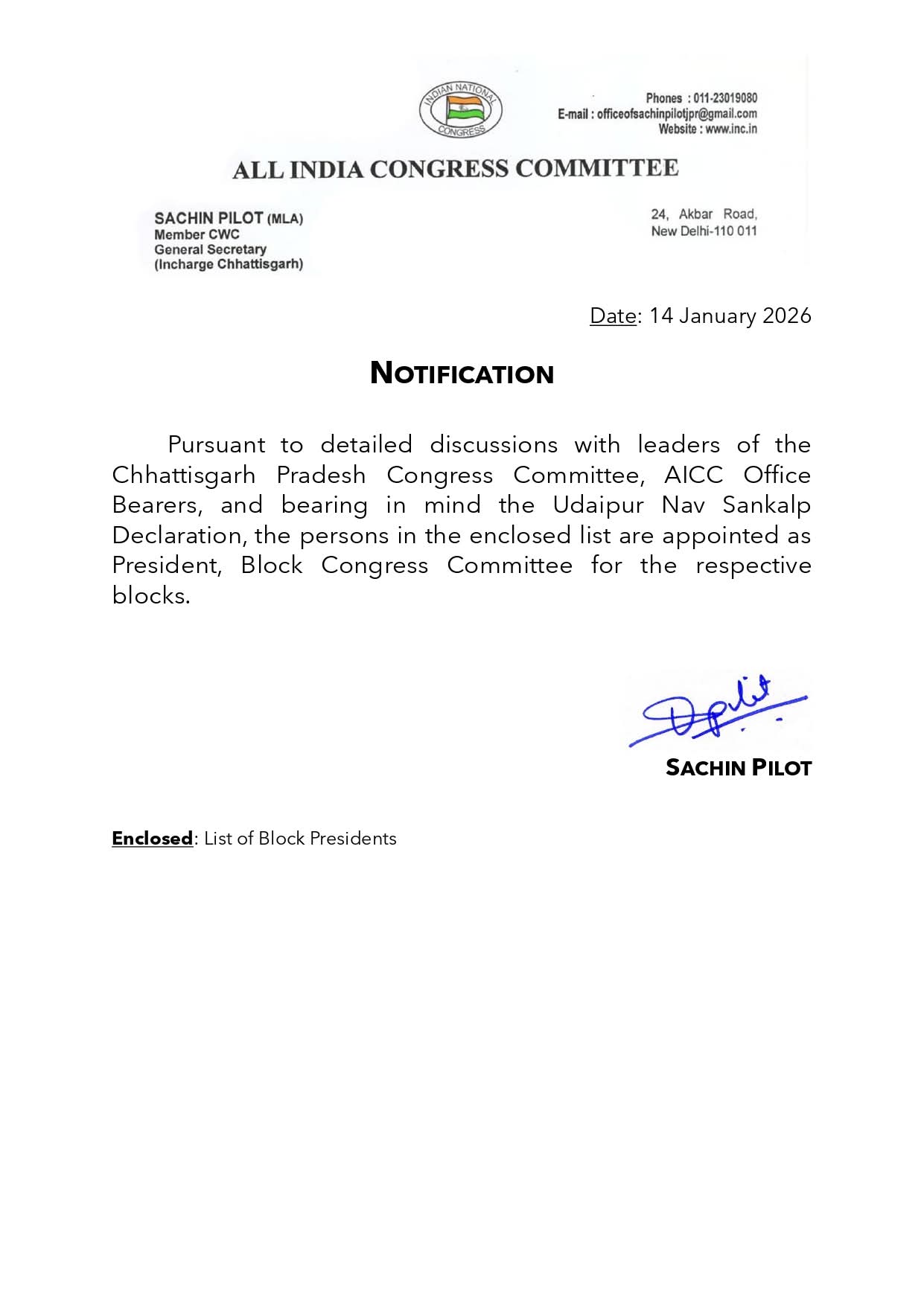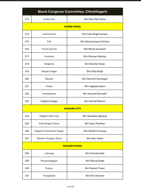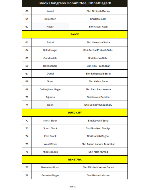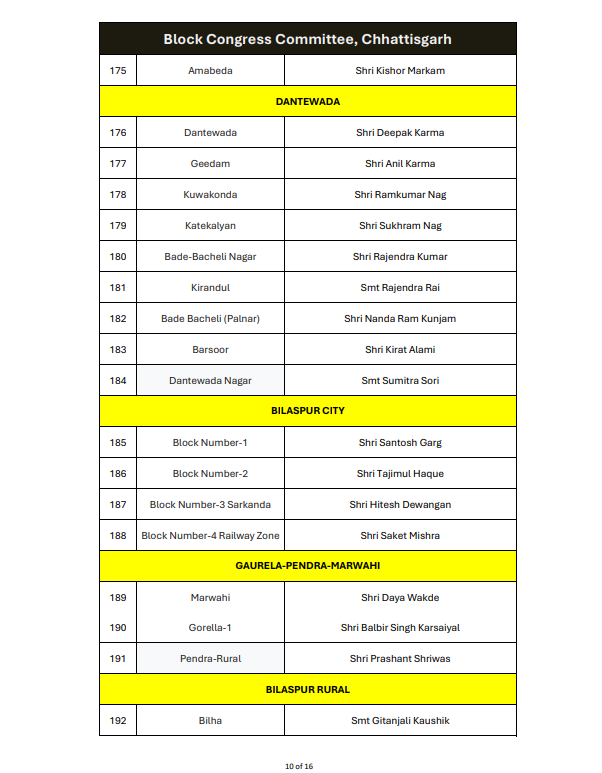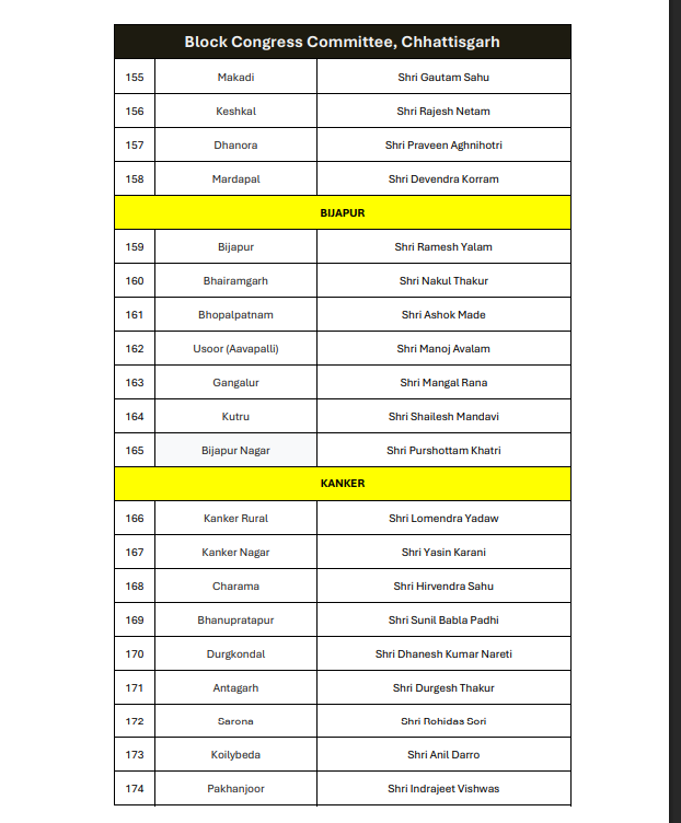 छत्तीसगढ़ में 307 ब्लॉक कांग्रेस अध्यक्षों की सूची जारी:कई महीनों से अटकी प्रक्रिया पूरी, नाराज नेताओं के लिए ‘एडजस्टमेंट फॉर्मूला’ तैयार