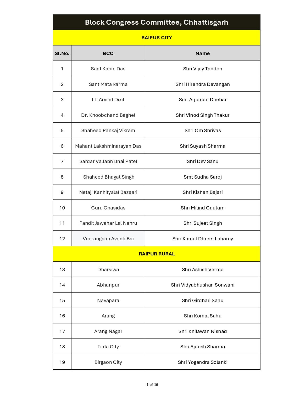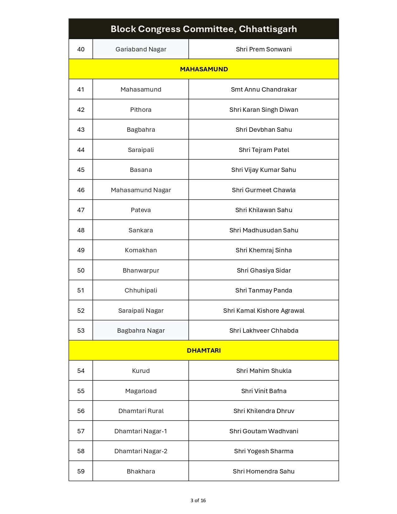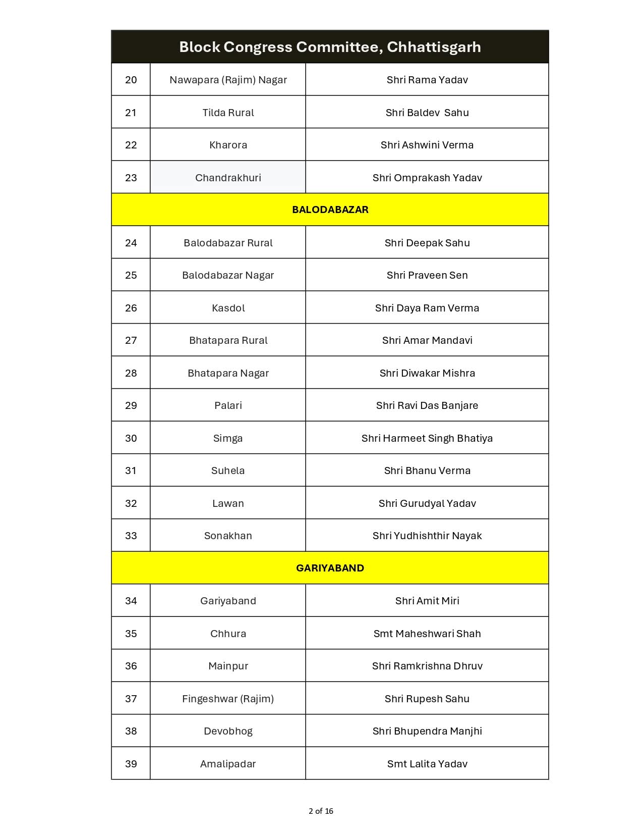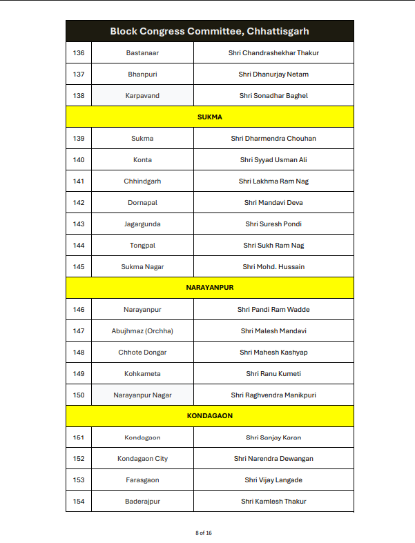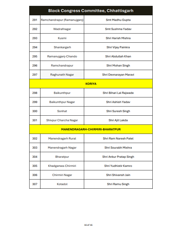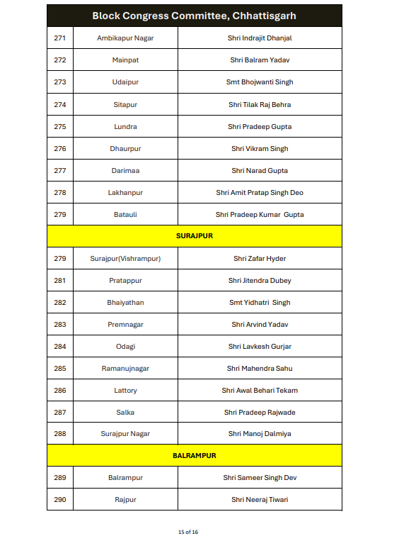 छत्तीसगढ़ में 307 ब्लॉक कांग्रेस अध्यक्षों की सूची जारी:कई महीनों से अटकी प्रक्रिया पूरी, नाराज नेताओं के लिए ‘एडजस्टमेंट फॉर्मूला’ तैयार