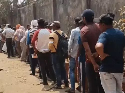 रायगढ़ में सिलेंडर के लिए लंबी लाइन दिखाई दी।