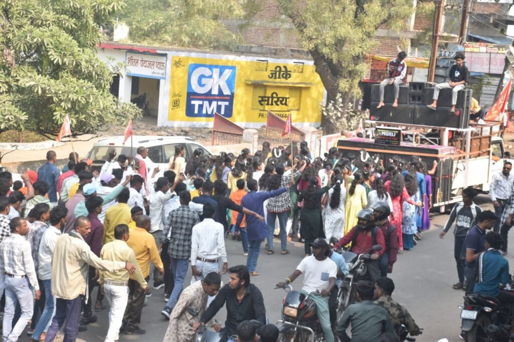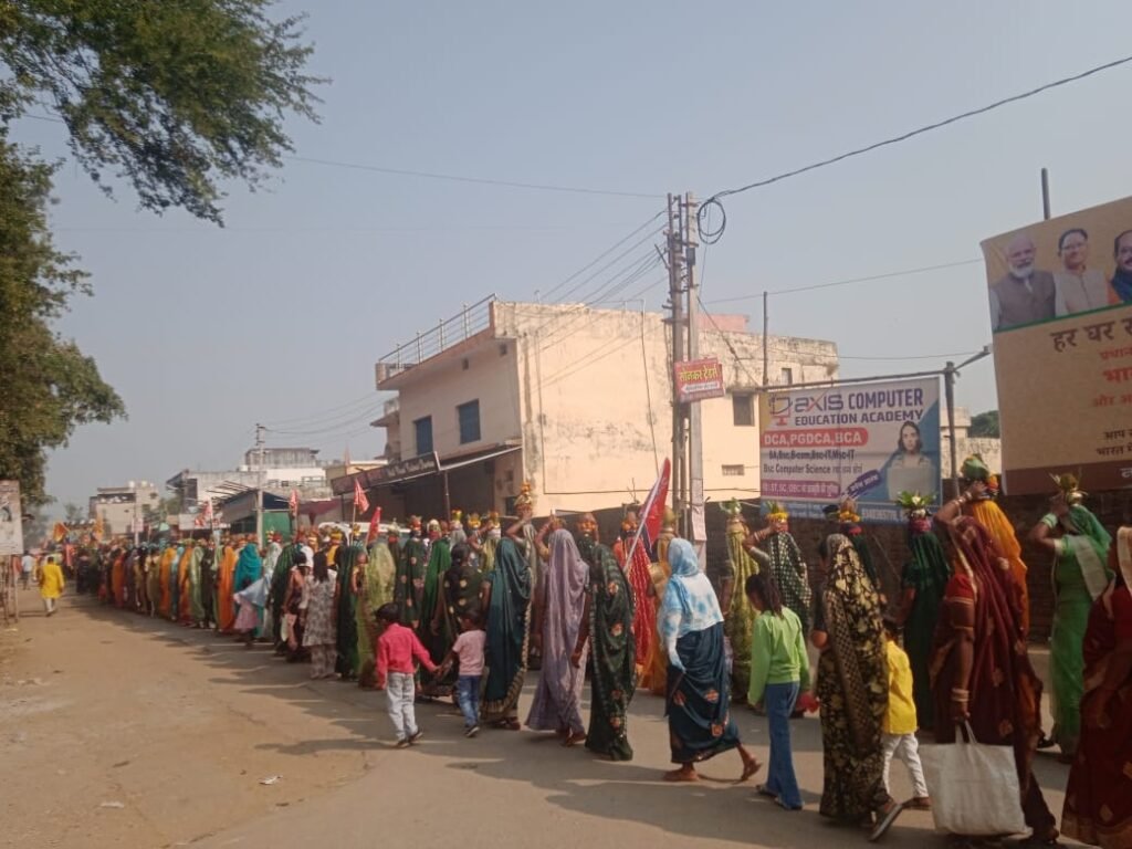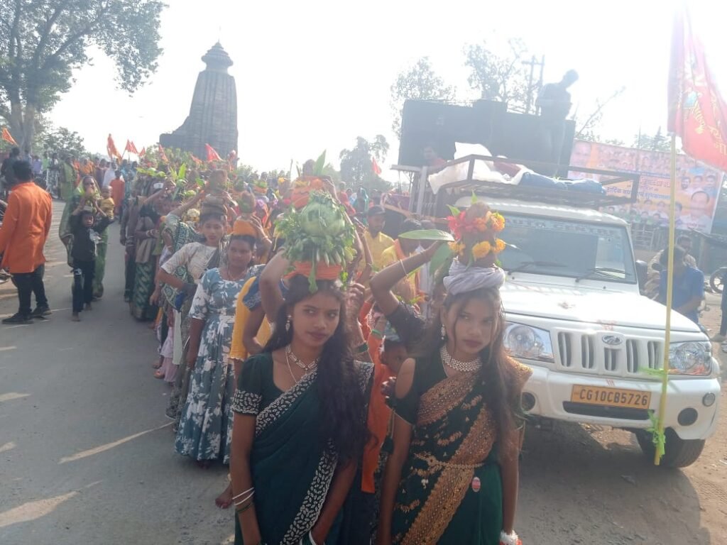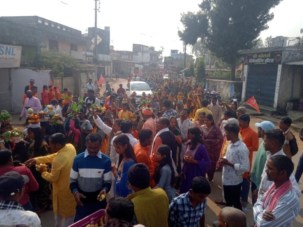 कोरबा/पाली। पाली में पटेल समाज की आराध्य देवी माँ शाकंभरी की जयंती बड़े ही श्रद्धा, आस्था और धूमधाम के साथ मनाई गई। कार्यक्रम की शुरुआत भव्य कलश यात्रा से हुई, जो पाली के शिव मंदिर से प्रारंभ होकर अटल चौक, बाजार मोहल्ला, गांधी चौक होते हुए पुरानी पानी टंकी स्थित शाकंभरी मंदिर में संपन्न हुई। कलश यात्रा में पटेल समाज की महिलाएं एवं पुरुष बड़ी संख्या में शामिल हुए। महिलाओं ने सिर पर कलश धारण कर उन्हें गोभी, मिर्च, मटर व भाटा की मालाओं से सजाया। यात्रा के दौरान “माँ शाकंभरी की जय”, “जय पटेल, जय मरार” के जयकारों से पूरा नगर भक्तिमय हो उठा और नगर भ्रमण किया गया। इसके पश्चात शाकंभरी मंदिर में माँ शाकंभरी की विधिवत पूजा-अर्चना की गई।