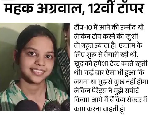 टॉपर महक अग्रवाल 10वीं में भी टॉपर रही हैं