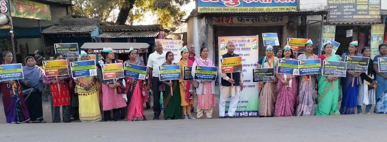 कोरबा। एक तरफ भाजपा सरकार एक साल पूर्ण होने पर जश्र मना रही है, तो दूसरी ओर भाजपा सरकार के एक साल पूरा होने के विरोध में कांग्रेस विरोध जता रही है। आज मुड़ापार बाजार के पास महिला कांग्रेस कमेटी के तत्वाधान में 1 घंटे का विरोध प्रदर्शन किया गया। प्रदेश कांग्रेस कमेटी के निर्देश पर प्रदेश के सभी जिला मुख्यालय में प्रदेश सरकार के विरोध में चरणबद्ध धरना प्रदर्शन किया गया।