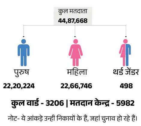 इसी तरह पिछले चुनाव यानि साल 2019 में हुए निकाय चुनाव के हिसाब से 5 लाख वोटर्स इस बार बढ़ गए हैं। 2019 में महिला मतदाताओं की संख्या पुरुष मतदाताओं के मुकाबले कम थी। इस बार पुरुषों के मुकाबले 46 हजार महिला वोटर्स ज्यादा हैं। हालांकि ये आंकड़े उन्हीं निकायों के हैं, जहां चुनाव हो रहे हैं।