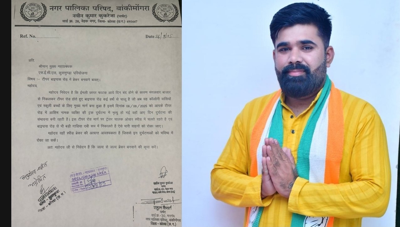 इमली छापर के टीपर बाईपास मार्ग में ब्रेकर बनवाने SECL कुसमुंडा परियोजना के मुख्य महाप्रबंधक को दिया गया ज्ञापन…देखे पूरी खबर