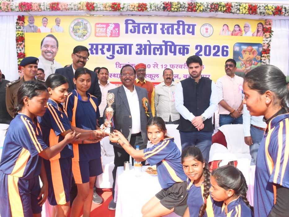 Divya Akashबलरामपुर/बिलासपुर,एजेंसी। बलरामपुर रामानुजगंज जिले में तीन दिवसीय जिला स्तरीय सरगुजा ओलंपिक का समापन स्वामी आत्मानंद हिंदी माध्यम विद्यालय के खेल मैदान में हुआ। आदिम जाति विकास तथा कृषि विकास एवं किसान कल्याण मंत्री रामविचार नेताम इस अवसर पर मुख्य अतिथि के रूप में उपस्थित रहे। यह खेल महोत्सव 10 से 12 फरवरी तक आयोजित किया गया था, जिसमें जिले भर के खिलाड़ियों ने उत्साहपूर्वक भाग लिया।