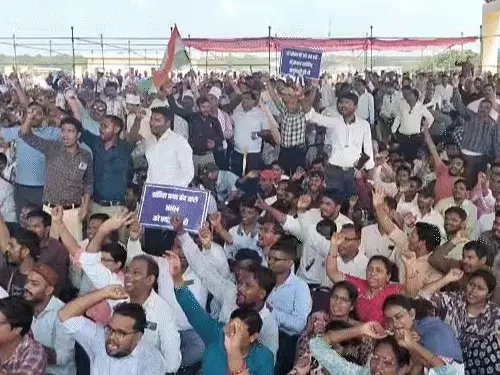 बिलासपुर, दुर्ग और रायपुर 3 संभाग के 10 हजार कर्मचारी तूता धरना स्थल पहुंचे।