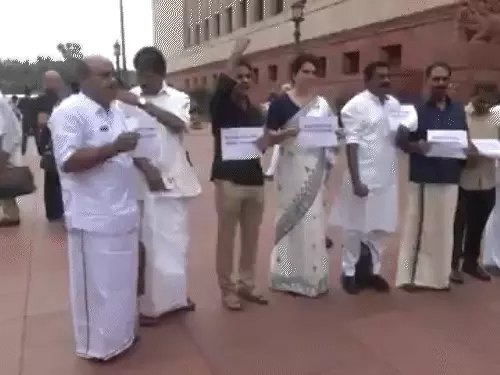 28 जुलाई को दिल्ली में संसद के बाहर सांसदों का प्रदर्शन