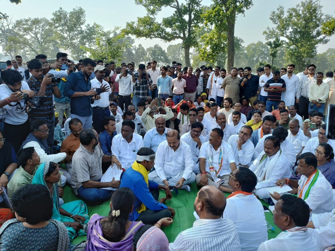 परसा कोल ब्लॉक के विरोध प्रदर्शन में शामिल हुए विधायक फूलसिंह राठिया