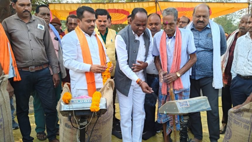 कोरबा। मुख्यमंत्री विष्णु देव साय के मंशानुरूप खरीफ विपणन वर्ष 2025-26 में समर्थन मूल्य पर किसानो से धान खरीदी कार्य का आज से शुभारंभ हो गया है। कटघोरा विधायक प्रेमचंद पटेल की उपस्थिति में आज विकासखण्ड पाली के आदिम जाति सेवा सहकारी समिति मर्यादित केंद्र कोरबी (धतुरा) में धान खरीदी कार्य का शुभारंभ हुआ।
