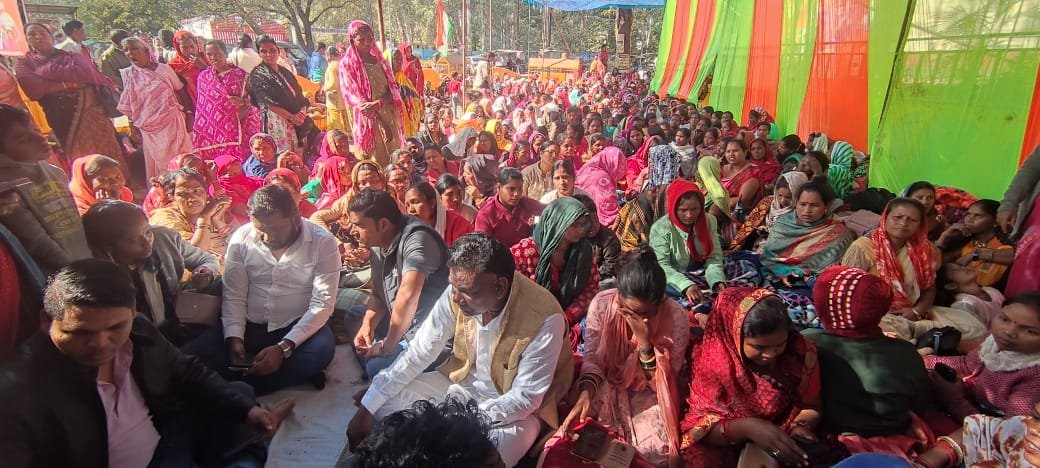 फ्लोरा-मैक्स से पीड़ित महिलाओं के साथ न्याय की मांग को लेकर धरना स्थल पहुंचे विधायक राठिया