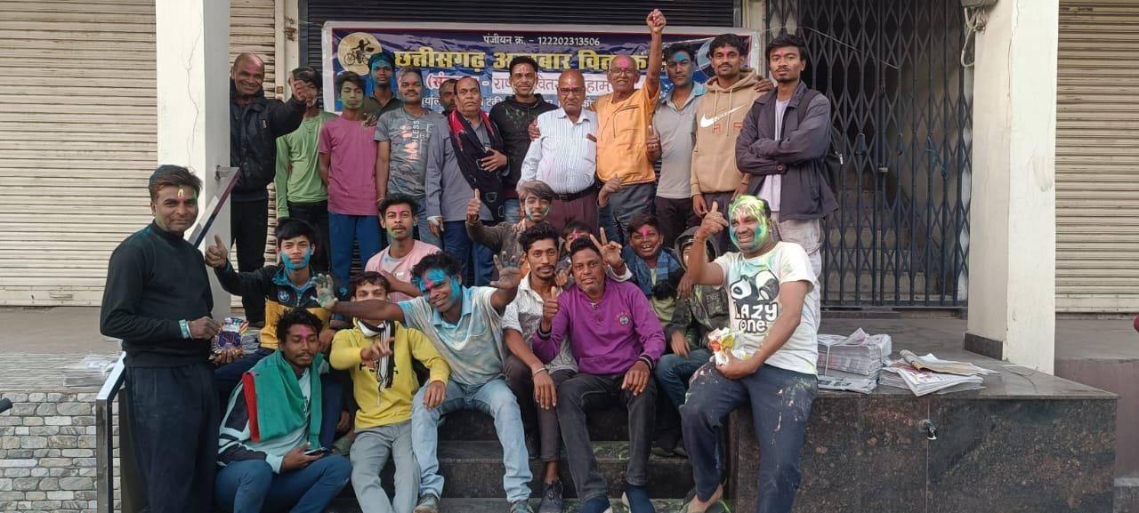 कोरबा। छत्तीसगढ़ अखबार वितरक संघ के सभी प्रतिनिधियों ने एक दूसरे के ऊपर रंग-बिरंगे गुलाल लगाकर होली का त्यौहार मनाया एवं पाठकों को होली की शुभकामनाएं भी दिए।
