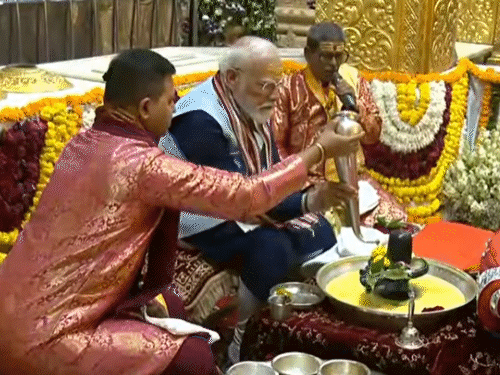 पीएम ने सुबह मंदिर में करीब 30 मिनट तक पूजा-अर्चना की। शिवलिंग पर जल चढ़ाया, फूल अर्पित किए और पंचामृत से अभिषेक किया।