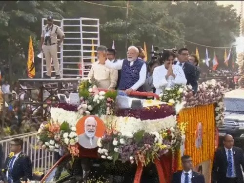 मोदी का विशाखापट्‌टनम में रोड शो शुरू:ग्रीन हाइड्रोजन हब की नींव रखेंगे, आंध्र प्रदेश के लिए कई प्रोजेक्ट्स का शिलान्यास-उद्घाटन करेंगे