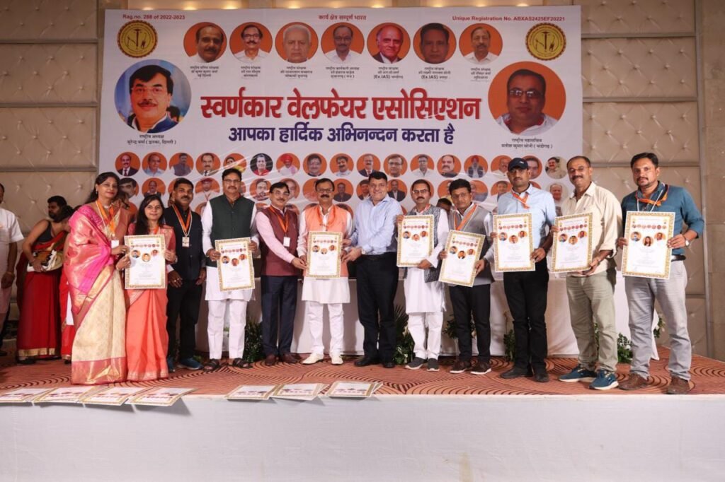 कोरबा। स्वर्णकार वेलफेयर एसोसिएशन ने अपना राष्ट्रीय अधिवेशन होटल द निकुंज दिल्ली में आयोजित किया। इस आयोजन में देश के विभिन्न प्रदेशों के स्वर्णकार समाज के प्रतिष्ठित पदाधिकारिगण, समाज के उच्च पदों पर सेवारत अधिकारीगण, समाजसेवी और वरिष्ठजनों ने बढ़चढ़ कर हिस्सा लिया। आयोजनकर्ताओं द्वारा समस्त अतिथियों का स्वागत और सम्मान भव्य रूप से किया गया। यह आयोजन राष्ट्रीय अध्यक्ष सुरेंद्र वर्मा की अध्यक्षता में शुरू की गई। तत्पश्चात इस अधिवेशन में समाज के प्रतिभावान व्यक्तियों को शॉल व स्मृति चिन्ह प्रदान कर राष्ट्रीय मंच पर सम्मानित किया गया। इस आयोजन का मुख्य उद्देश्य सम्पूर्ण भारत के स्वर्णकार समाज को एक सूत्र में बांधना, स्वर्णकार समाज को नई दिशा प्रदान करना तथा स्वर्णकार समाज के हितों की रक्षा करने हेतु कार्य योजना तैयार करना था। साथ ही स्वर्णकार समाज के बच्चों की शिक्षा एवं कौशल विकास पर पूरा ध्यान दिया जाए इस पर भी गहन मंथन किया गया। इस आयोजन के मुख्य अतिथि घनश्याम सोनी जोनल डायरेक्टर एनसीबी,दीप वर्मा शिक्षाविद, वेद प्रकाश सूर्या डीआईजी एनआईए, शेखर वर्मा असिस्टेंट कमिश्नर जीएसटी, श्रीराम मौसूण , एम.एल. वर्मा, के.के. वर्मा आदि ने मंचासीन होकर आयोजन की शोभा बढ़ाई। स्वर्णकार वेलफेयर एसोसिएशन के इस राष्ट्रीय अधिवेशन को सफलतापूर्वक आयोजन कराने में प्रमुख रूप से वेलफेयर के राष्ट्रीय अध्यक्ष सुरेंद्र वर्मा , राष्ट्रीय महासचिव सतीश सोनी एवं राष्ट्रीय युवा अध्यक्ष सी.पी.सोनी का योगदान सराहनीय रहा। इस आयोजन में दिल्ली प्रदेश अध्यक्ष व पदाधिकारियों का विशेष योगदान रहा। साथ ही कार्यक्रम में अन्य प्रदेश अध्यक्षों और पदाधिकारियों, कार्यकर्ताओं की मेहनत व योगदान भी सराहनीय रहा। स्वर्णकार वेलफेयर के इस राष्ट्रीय अधिवेशन में छत्तीसगढ़ के प्रदेश अध्यक्ष डी.के.सोनी एवं प्रदेश महासचिव राकेश सोनी के मार्गदर्शन में प्रदेश के विभिन्न जिलों के पदाधिकारियों ने भी बढ़चढ़ कर हिस्सा लिया। श्रीमती प्रीति स्वर्णकार जिला कोरबा की सामाजिक एवं राजनितिक सक्रियता को देखते हुए उन्हें छत्तीसगढ़ राज्य की महिला प्रदेश अध्यक्ष का दयित्व्य सौंपा गया। मंच पर राष्ट्रीय महिला अध्यक्ष श्रीमती चाँद वर्मा के द्वारा उन्हें नियुक्ति पत्र, शाल एवं स्मृति चिन्ह देकर सम्मानित किया गया। इस अवसर पर कोरबा से अमित स्वर्णकार एवं छत्तीसगढ़ राज्य महिला प्रदेश संगठनमंत्री श्रीमती मीनाक्षी स्वर्णकार जिला बलौदाबाजार की प्रमुख भूमिका रही। उक्त राष्ट्रीय अधिवेशन में स्पर्श सराफ को खेल के क्षेत्र में उत्कृष्ट प्रदर्शन के लिए, पप्पू सोनी को कारगिल युद्ध में योगदान के लिये, रवि सोनी को शिक्षा मे