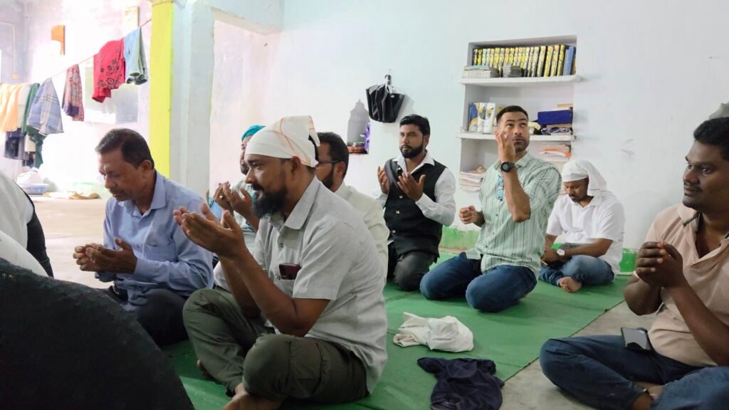 पूरे मुस्लिम समाज के इमाम साहब (गुरुजी) द्वारा पूरे भारत देश के हिफाजत, अमन, चैनों सुकून, और शांति, के लिए प्राथना (दुआ) कर लड्डू बाटा गया।