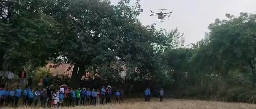 ड्रोन डेमोन्सट्रेशन के माध्यम से खेतों में नैनो यूरिया छिड़काव का किया गया प्रदर्शन