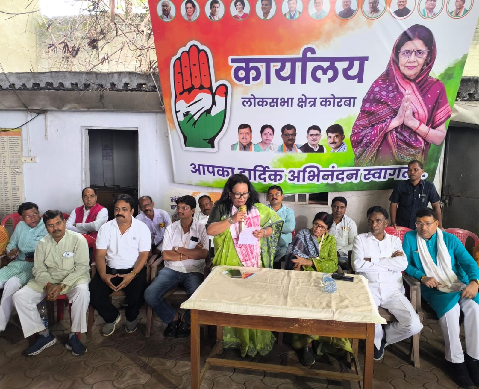 कोरबा। राष्ट्रीय कांग्रेस सचिव एवं छत्तीसगढ़ कांग्रेस प्रभारी सुश्री जरिता लैतफलांग ने आज जिला कांग्रेस कार्यालय टी.पी. नगर कोरबा में जिले के तीन विधानसभा क्षेत्र रामपुर, पाली-तानाखार एवं कटघोरा के कांग्रेस कार्यकर्ता एवं पदाधिकारियों की बैठक ली। बैठक को संबोधित करते हुए सुश्री जरिता लैतफलांग ने कहा कि मुझे हाल ही में छत्तीसगढ़ का सहप्रभारी बना कर छत्तीसगढ़ के जिलों का प्रभार सौपा है।