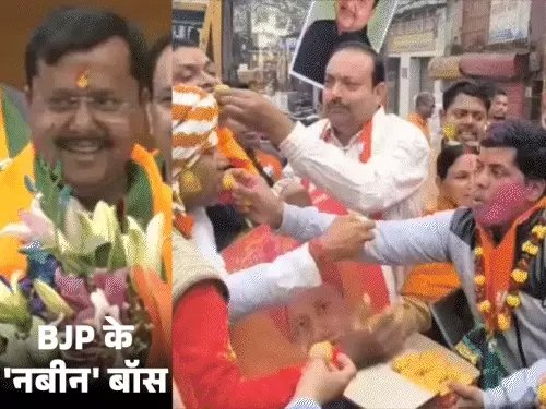 नितिन नबीन के अध्यक्ष बनने पर पटना में कार्यकर्ताओं ने आतिशबाजी की।