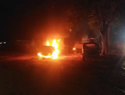 4 हाईवा, क्रेन और जेसीबी समेत 14 वाहनों को फूंका
