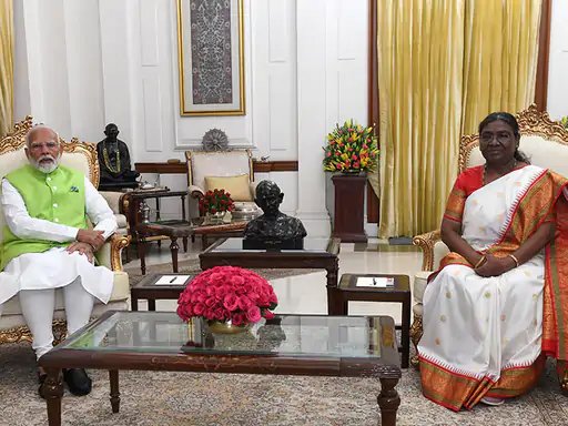 पीएम मोदी बुधवार दोपहर 2 बजे राष्ट्रपति द्रौपदी मुर्मू से मिले।