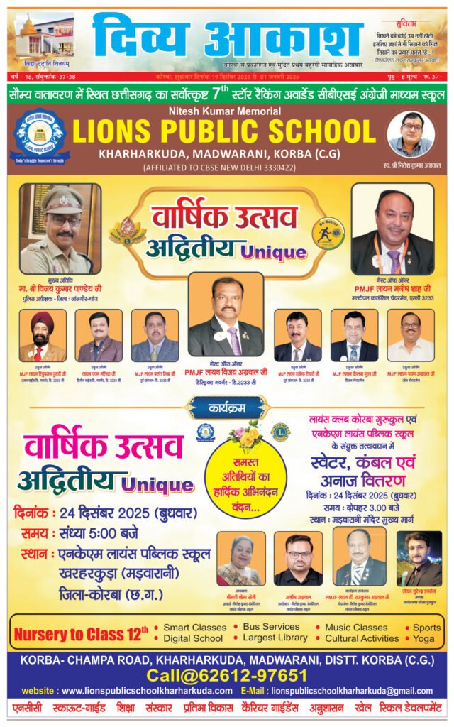 नितेश कुमार लायंस पब्लिक स्कूल खरहरकुड़ा (मड़वारानी) का वार्षिकोत्सव ”अद्वितीयÓÓ का आयोजन 24 दिसंबर को