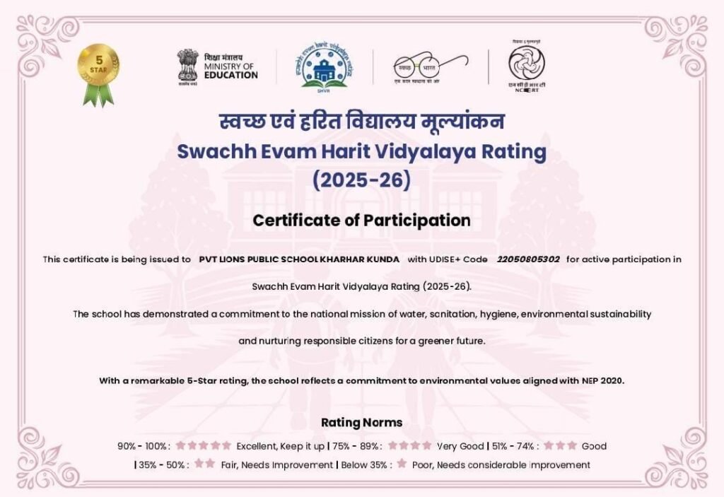 शिक्षा मंत्रालय का आयोजन:नितेश कुमार मेमोरियल लायंस पब्लिक स्कूल खरहरकुड़ा को मिला 5 स्टार रैंक
