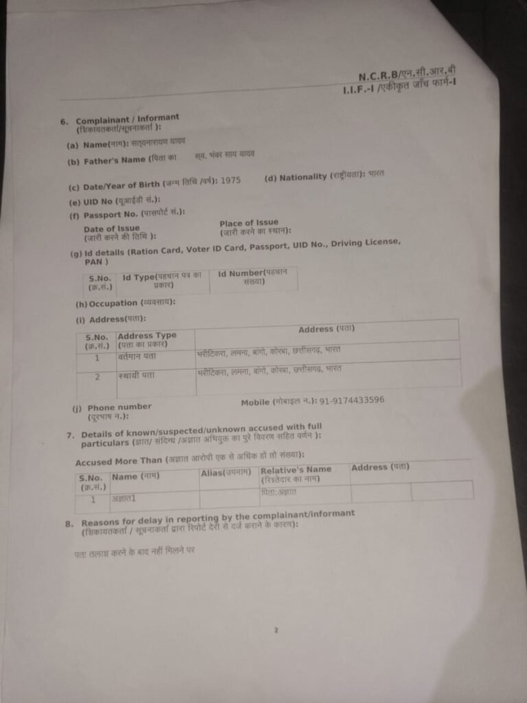 इस संबंध में बांगो थाना में दर्ज कराई गई रिपोर्ट में सत्यनारायण यादव (50 वर्ष), पिता भंवर साय यादव, निवासी ग्राम लमना भरीटीकरा ने बताया कि वे खेती-किसानी कर अपने परिवार का पालन-पोषण करते हैं। उन्होंने बताया कि उनकी बड़ी बेटी सावित्री यादव का पहले पति से तलाक हो चुका है और वर्तमान में वह दूसरा विवाह कर कुड़ेली माजा में निवास कर रही है। पहले पति दलसाय से जन्मी बेटी पूजा यादव को वे बचपन से अपने पास रखकर पालन-पोषण कर रहे थे।